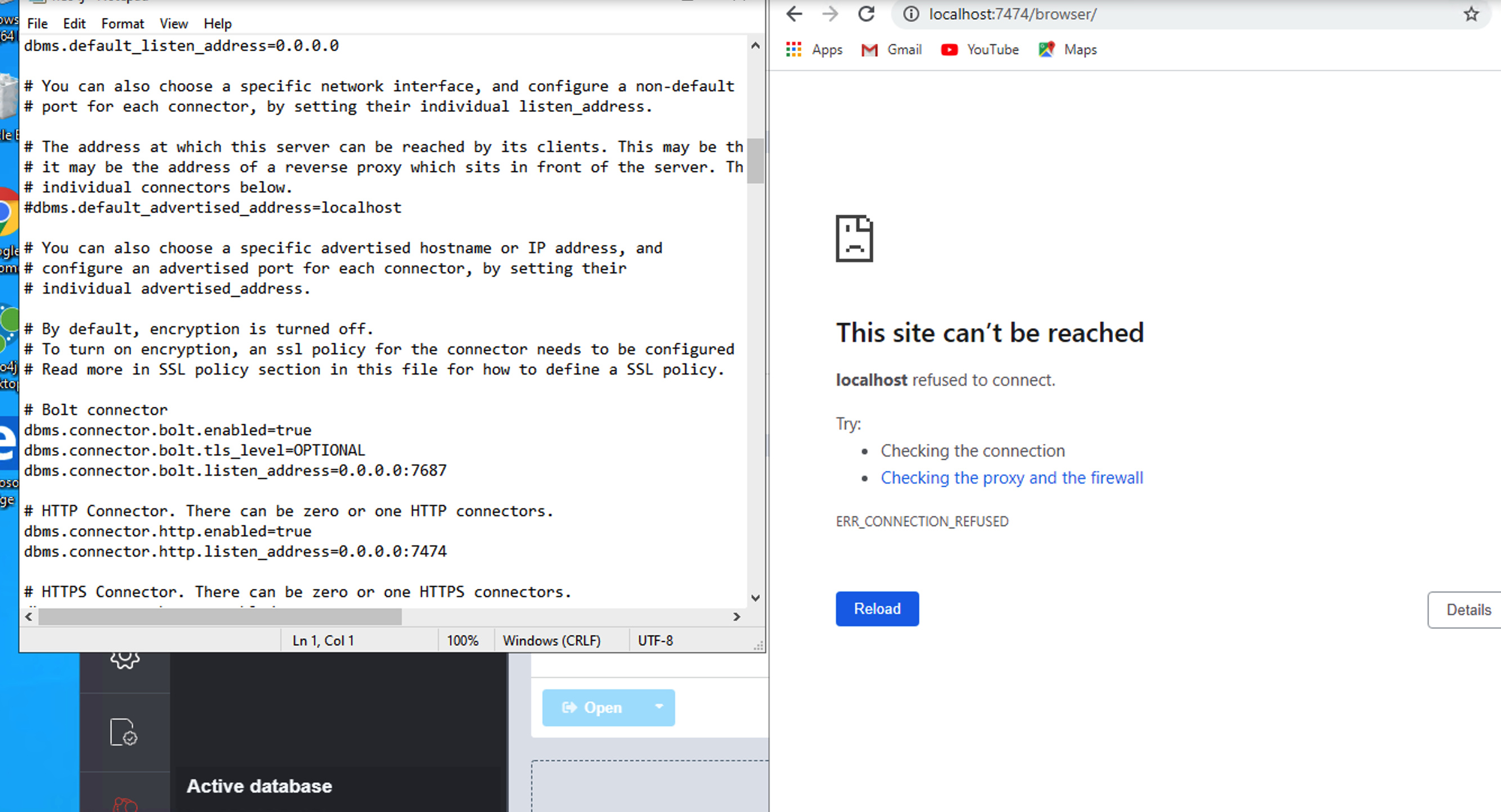 For the neo4j.conf file, maybe get a fresh new one and only changed lines I gave you at the beginning.